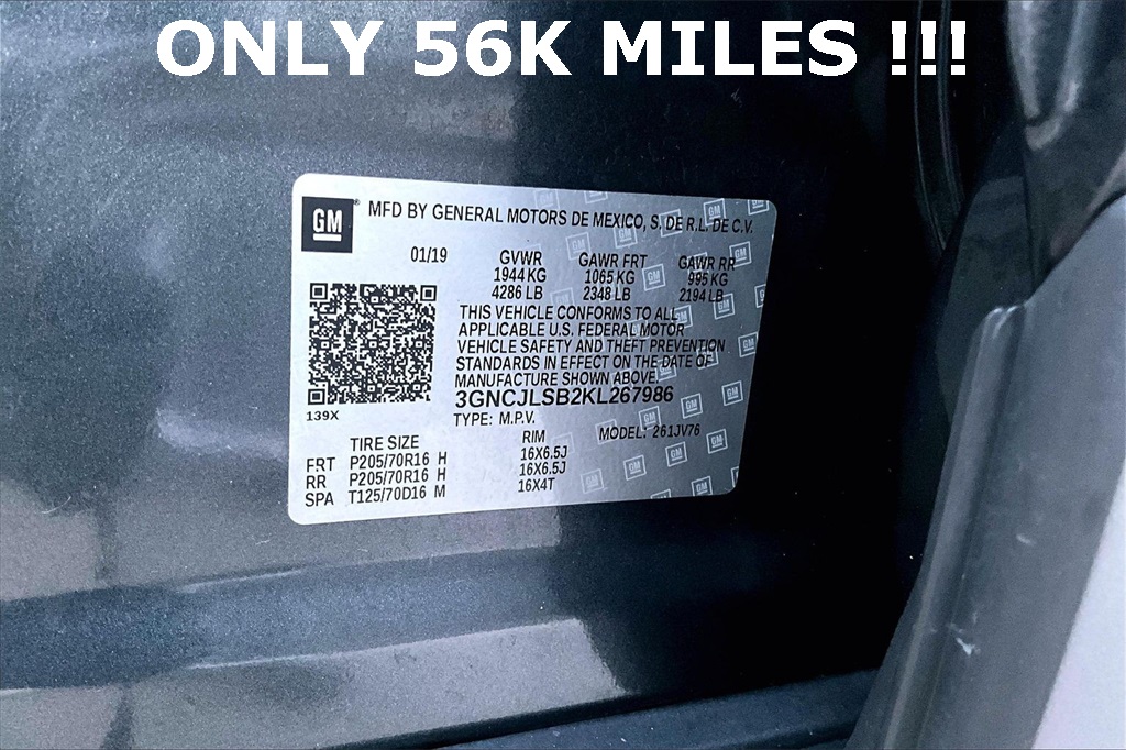 VIN: 3GNCJLSB2KL267986 | Stock #: 267986A | Mileage: 56,976