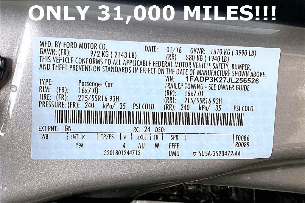 VIN: 1FADP3K27JL256526 | Stock #: 256526P | Mileage: 31,792