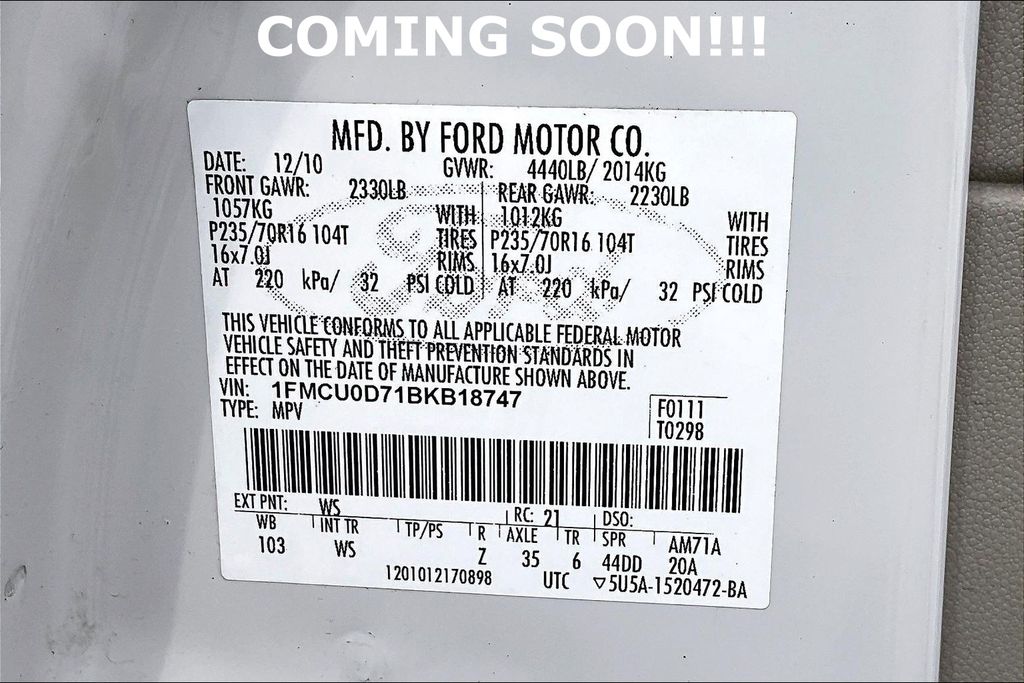 VIN: 1FMCU0D71BKB18747 | Stock #: B18747A | Mileage: 192,689