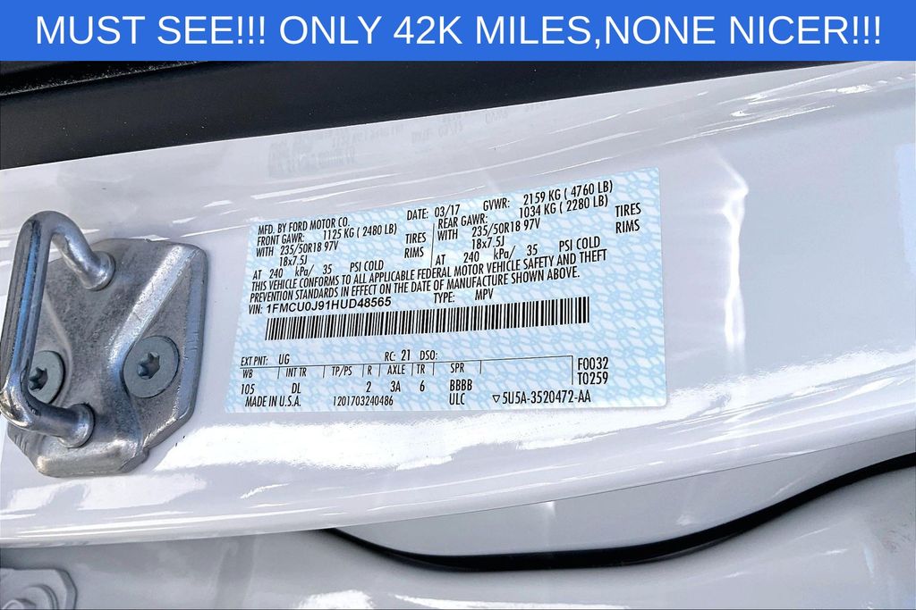 VIN: 1FMCU0J91HUD48565 | Stock #: D48565A | Mileage: 42,443